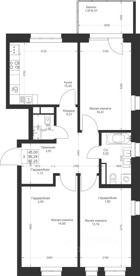 Комфортная 3-комнатная квартира с отдельной кухней и двумя санузлами. В квартире есть просторный балкон, где вы сможете организовать уютное место для отдыха.