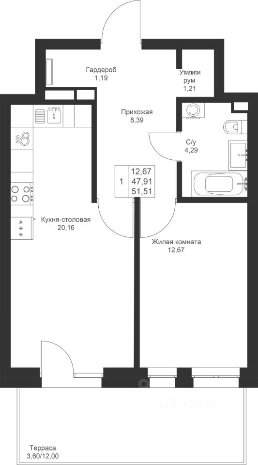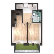 Просторная 1-комнатная квартира с кухней-гостиной, из которой организован выход на балкон. Здесь можно устраивать семейные ужины или встречи с друзьями.