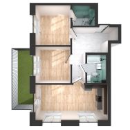 Уютная 2-комнатная квартира с кухней-гостиной и отдельной спальней. На балконе можно обустроить дополнительное место для отдыха или работы. Продуманное зонирование: кухонная зона находится в нише, чтобы скрыть рабочие процессы.