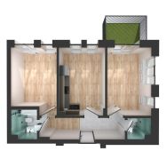 Продается 2-комнатная квартира 140 площадью 58,61 кв.м на 1 этаже в строящемся доме проекта "Новый свет" компании "Ак Барс Дом".