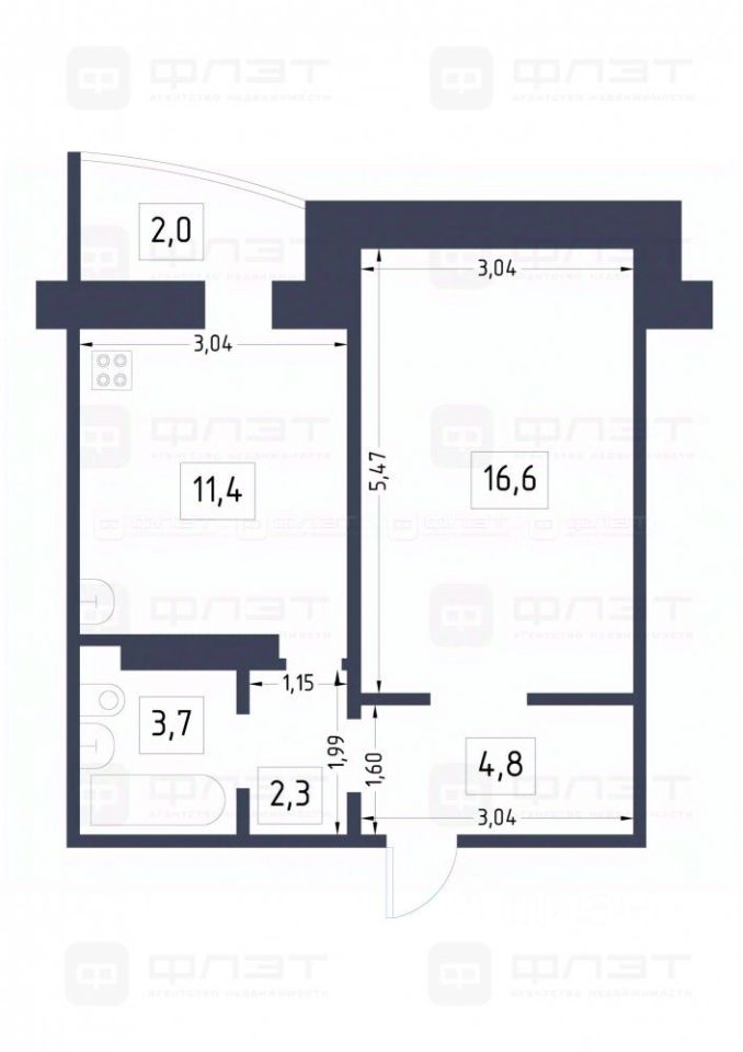 Общая площадь квартиры 40,80 м.кв. с учетом лоджии.