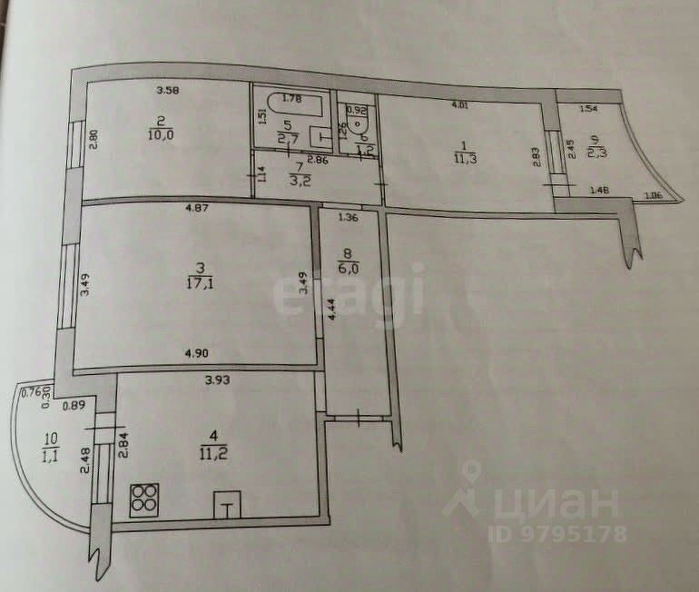 Комнаты: площадью 17 м², 10 м² и 11 м² (с выходом на балкон)