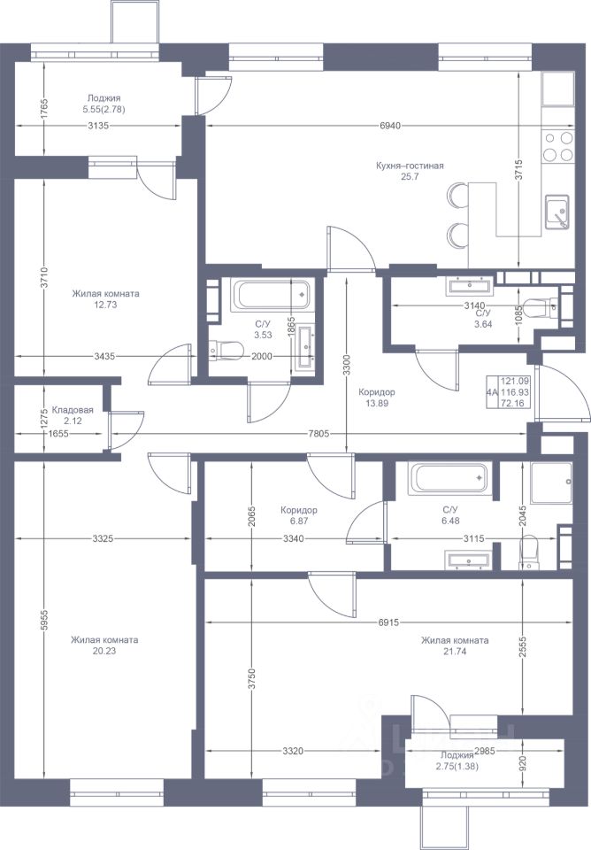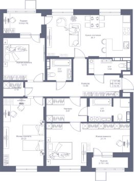 Просторная кухня-гостиная в 25,7 кв. м, 3 отдельные комнаты, функциональная прихожая с нишами по гардеробную, 2 санузла и 2 лоджии, отдельная гардеробная комната. Мастер-спальня для хозяев квартиры с выходом на лоджию и санузлом.