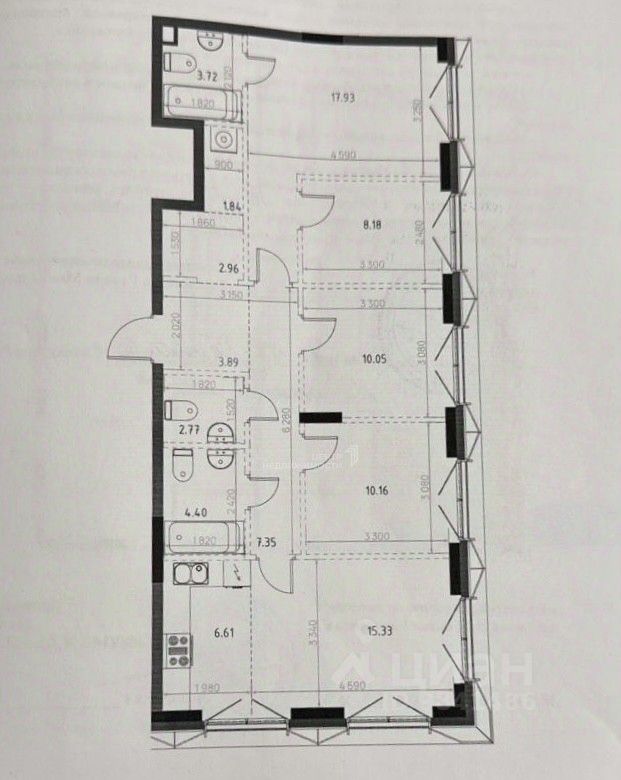 Площадь квартиры позволяет делить пространство на 4 комнаты!