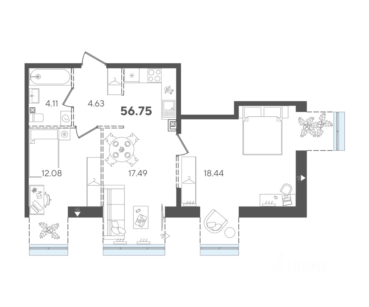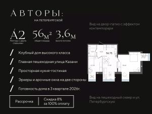 Продается двуспальный пентхаус 17 в клубном доме "Авторы на Петербургской" на главной пешеходной улице Казани. Квартира на 3 этаже площадью 56,75 м², высотой потолков до 3,6 м. Квартира сдается в свободной планировке, предоставляя полную свободу для ваших предпочтений в дизайне и возможность подстроить пространство под ваши жизненные ценности.