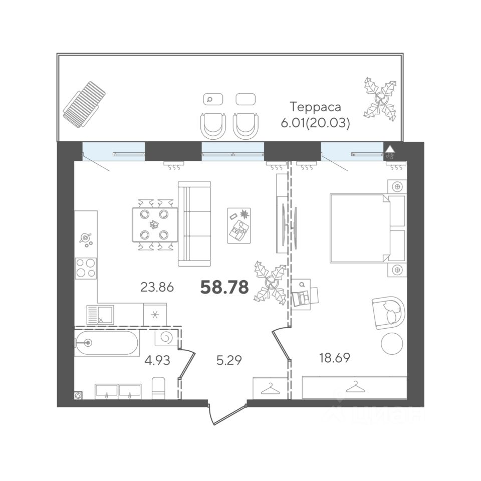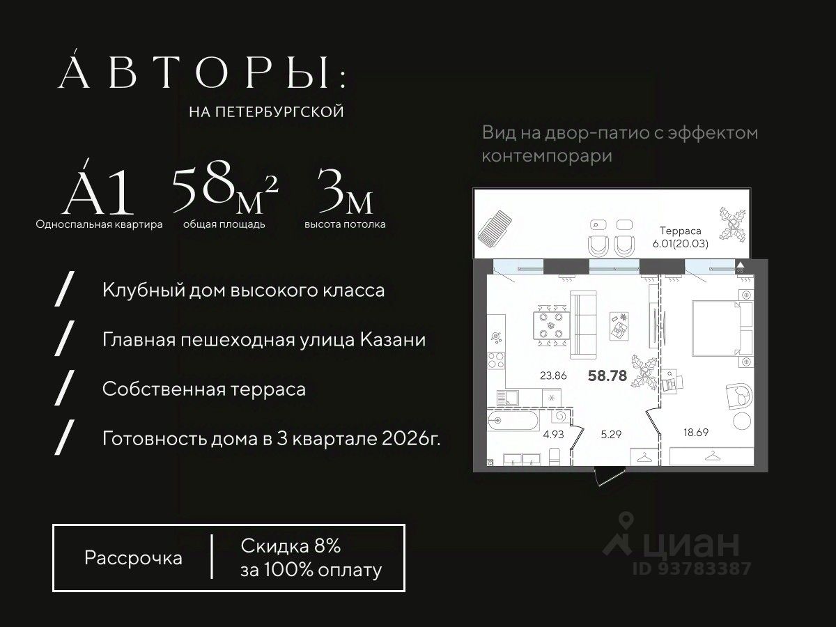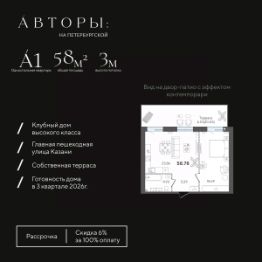 Продаётся 1-комнатная квартира в строящемся доме (Корпус 1), срок сдачи: III-кв. 2026, общей площадью 58.78 кв.м., на 2 этаже. Авторы на Петербургской - это архитектурный портал, соединяющий приватность частной жизни с бурлящими ритмами города.