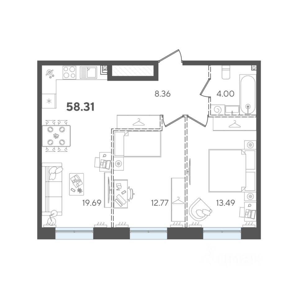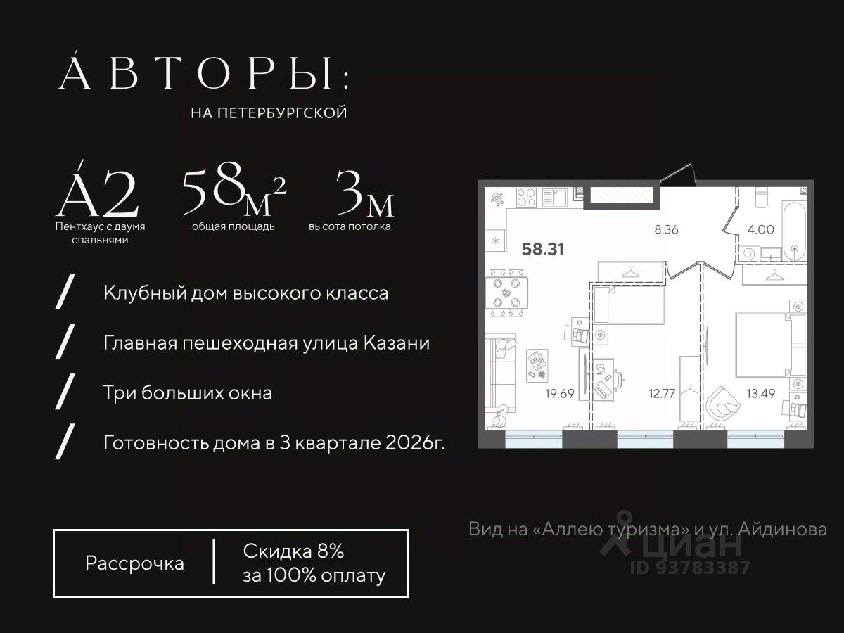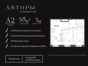 Продаётся 2-комнатная квартира в строящемся доме (Корпус 1), срок сдачи: III-кв. 2026, общей площадью 58.31 кв.м., на 4 этаже. Авторы на Петербургской - это архитектурный портал, соединяющий приватность частной жизни с бурлящими ритмами города.