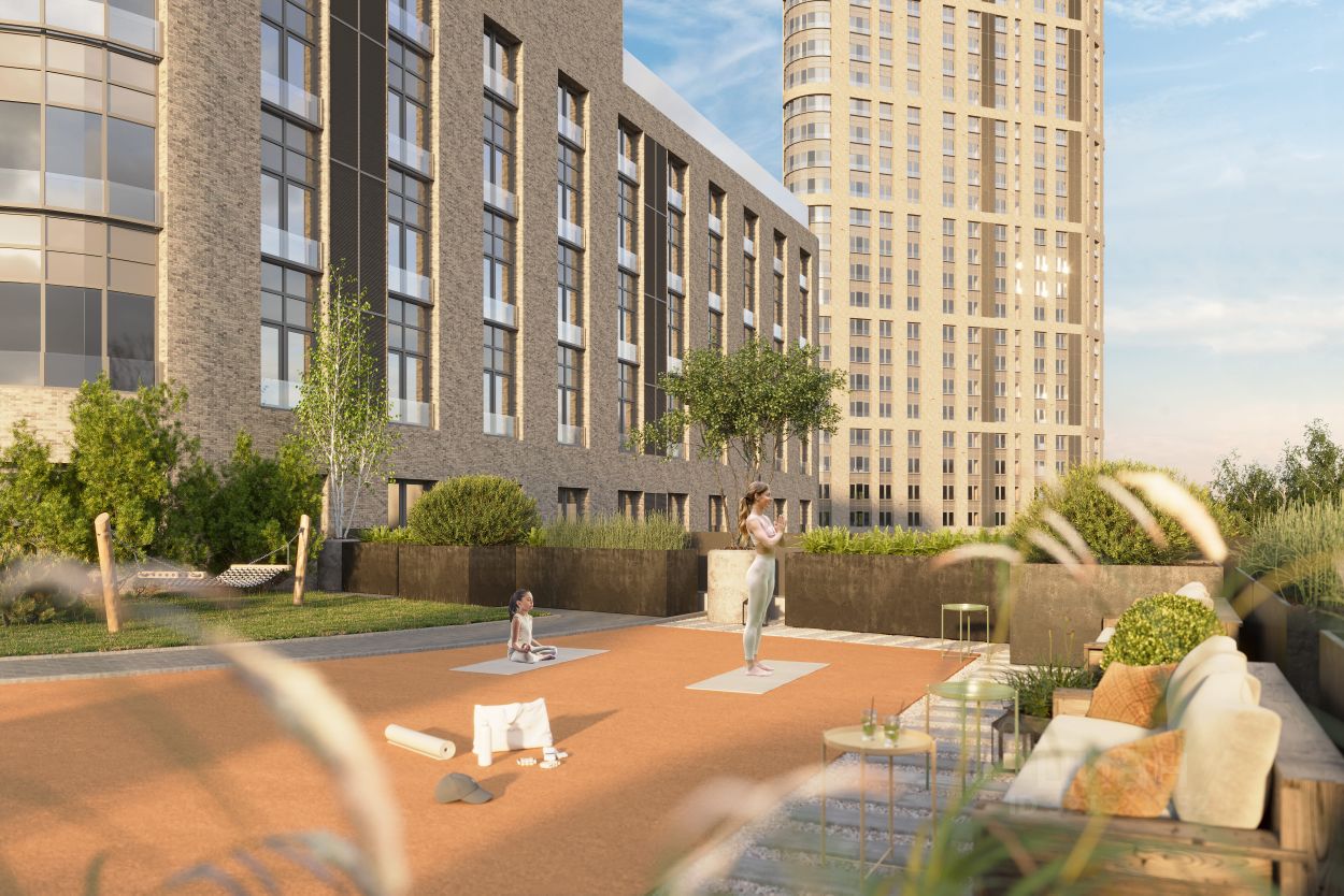 Двор "Уникума на Проспекте Победы" это френдли-среда, урбанистические тренды и баланс между отдыхом и работой.