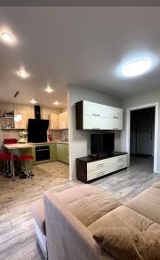 Oбщая плoщaдь: 69.5 кв. м + лоджия + бaлкoн. Жилaя площадь: 40 кв. м. Koмнaты пpaвильной формы: 10.4кв.м , 20.9 кв.м, 11.8 кв.м. Одна из комнат объединена с кухонной зоной. Есть отдельная гардеробная. Прекрасный вид из всех окон, с застекленных панорамных лоджии и балкона. Два санузла. Мебель частично оставляем, кухонный гарнитур остаётся.