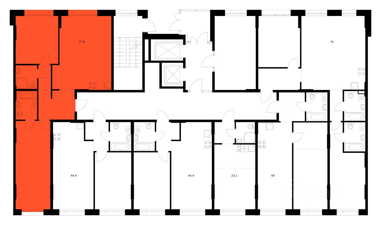 Продаётся 2-комн. квартира площадью 77,6 кв.м на 1 этаже 16 этажного дома (Корпус 3, Секция 5) проекта ПИК Сиберово. Светлый просторный подъезд на уровне земли, функциональная планировка, большие окна, предчистовая отделка.