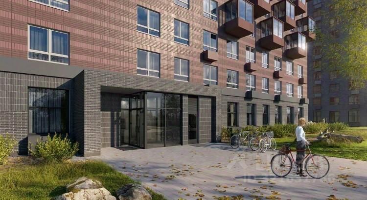 Отделка первых этажей выполнена из клинкерного кирпича — износостойкого материала, который хорошо переносит перепады температур. На нижнем этаже кафе, магазины и другие сервисы. На подземном этаже предусмотрены кладовые для крупных и сезонных вещей, а на первом этаже комната для хранения колясок.