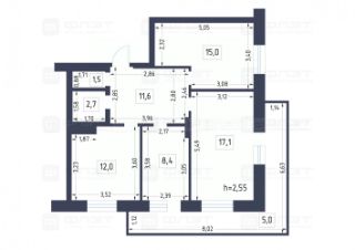 Объект 115197 Продажа 3-ки с изолированными комнатами!Продается просторная видовая 3-комнатная квартира 73м в Приволжском р-не г.Казани.Дом 18-этажный, квартира находится на видовом 11 этаже.