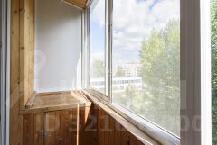 Установлены стеклопакеты, балкон обшит вагонкой, встроенный шкаф купе, сан.узел совмещенный в кафеле