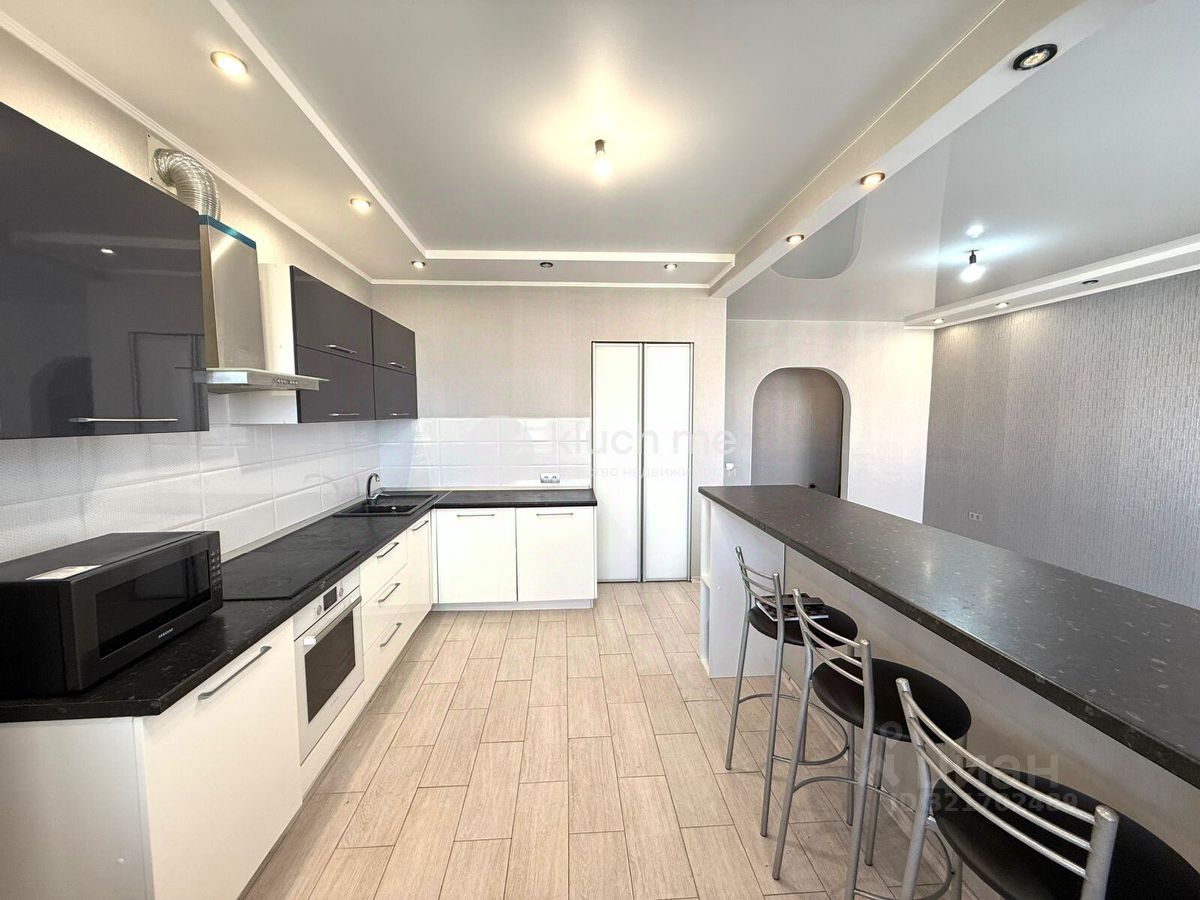 на полу ламинат, качественные двери, потолки многоуровневые, техника Bosh ( духовой шкаф, плита, посудомоечная машина) Мебель остается, забирают телевизор и холодильник. Ванная в современной плитке , акриловая ванна)