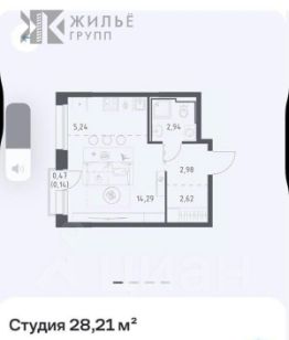 Просторная студия новостройка на 12 этаже 24-этажного дома с площадью 28.21 кв.м. Кухня площадью 5.24 кв.м. Обращает на себя внимание отличное сочетание цена-качество - вы получаете уютное жилье по доступной цене.