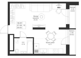 Продается 1-комнатная квартира 711 площадью 38,81 кв.м на 10 этаже в строящемся доме проекта "Мой Ритм" компании "Ак Барс Дом".