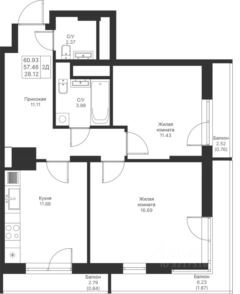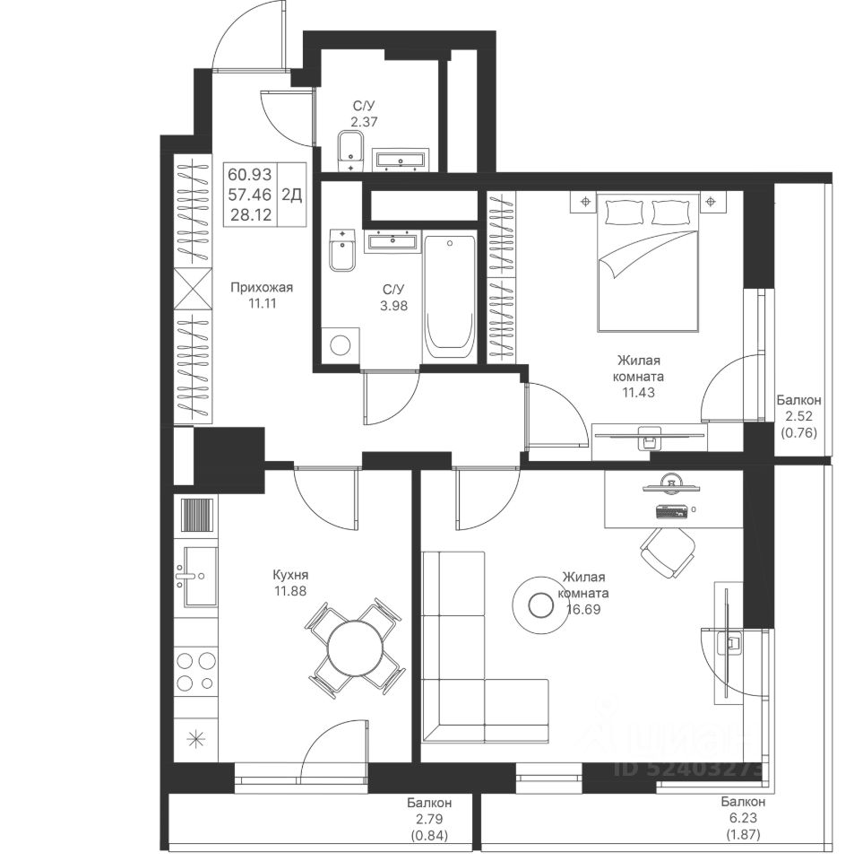 Продается 2-комнатная квартира 846 площадью 60,93 кв.м на 23 этаже в строящемся доме проекта "Мой Ритм" компании "Ак Барс Дом".