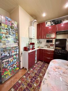 Три просторные комнаты площадью 17/13/12 кв.м. Имеется застекленный обшитый балкон с выходом из спальни. Кухня площадью 6 кв.м. Санузел совмещенный, в кафеле.