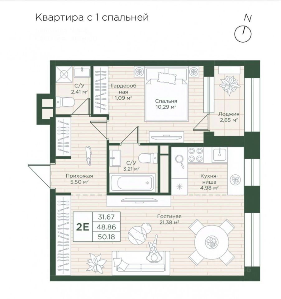 Изолированная мастер-спальня 10 м² с собственной ванной комнатой — ваш приватный оазис спокойствия и восстановления сил. Здесь царит уединение и покой.