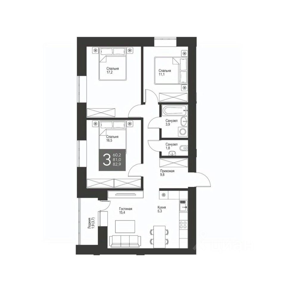 Продаётся 3-комнатная квартира в строящемся доме (Дом 60), срок сдачи: IV-кв. 2025, общей площадью 82.9 кв.м., на 14 этаже. Жилой комплекс комфорт класса "Олимпик life" - лидер в своей области, первый по качественным характеристикам, чемпион в своей среде. "Олимпик life" создан для безопасной, современной и комфортной жизни. Удобные планировки, закрытый двор с зоной для спорта и отдыха, прекрасная развитая инфраструктура района - здесь есть все для счастливой жизни.