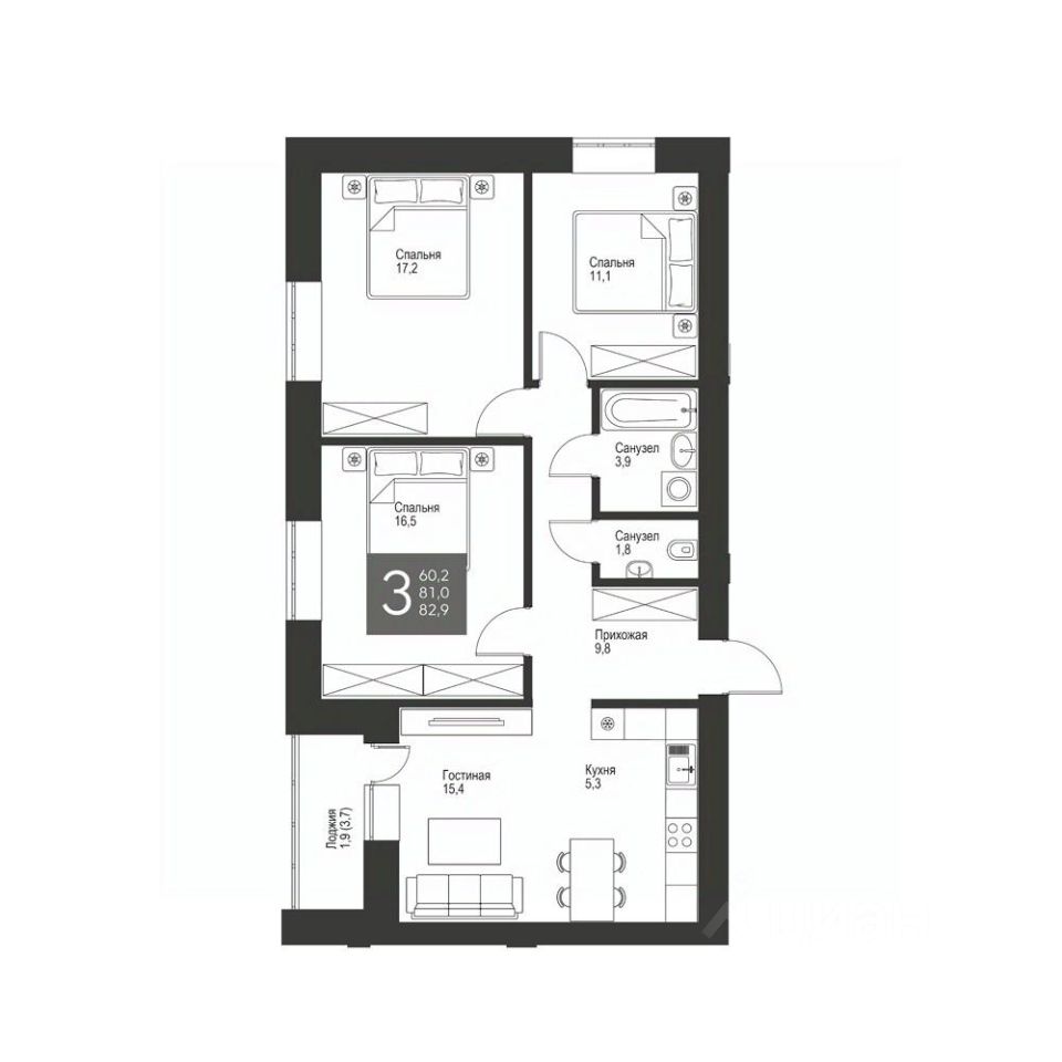 Продаётся 3-комнатная квартира в строящемся доме (Дом 60), срок сдачи: IV-кв. 2025, общей площадью 82.9 кв.м., на 9 этаже. Жилой комплекс комфорт класса "Олимпик life" - лидер в своей области, первый по качественным характеристикам, чемпион в своей среде. "Олимпик life" создан для безопасной, современной и комфортной жизни. Удобные планировки, закрытый двор с зоной для спорта и отдыха, прекрасная развитая инфраструктура района - здесь есть все для счастливой жизни.