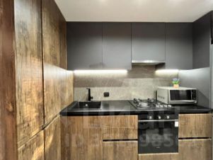 Кухня-7.44 м², в которой расположен встроенный кухонный гарнитур в стиле лофт;
