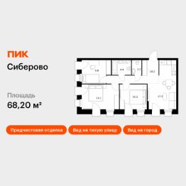 Продаётся 3-комн. квартира площадью 68,2 кв.м на 2 этаже 8 этажного дома (Корпус 2, Секция 3) проекта ПИК Сиберово. Светлый просторный подъезд на уровне земли, функциональная планировка, большие окна, предчистовая отделка.