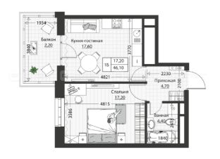1-комнатная квартира 46.1 м² на 3 этаже в строящемся доме бизнес-класса Жилого комплекса "TRIO".