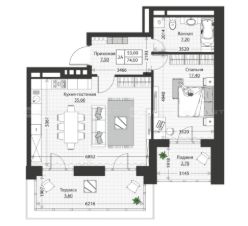 2-комнатная квартира 74 м² на 1 этаже в строящемся доме бизнес-класса Жилого комплекса "TRIO".