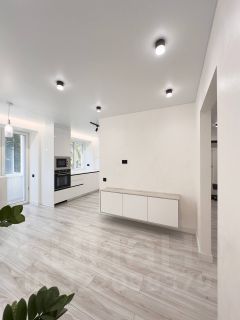Потолки - нятяжные, точечные светильники и трековое освещение в рабочих зонах.
