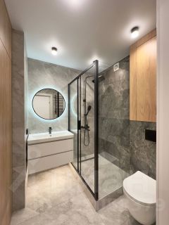 Стены - декоративная штукатурка и керамическая плитка в мокрых точках.