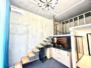 Полностью готова к проживанию: Стильная комната с высоким потолком и встроенным кухонным гарнитуром. Современный совмещенный санузел. Вам осталось только привезти свои вещи.