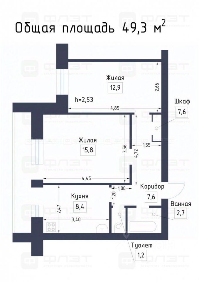 Полная стоимость в договоре, чистая продажа, один взрослый собственник!