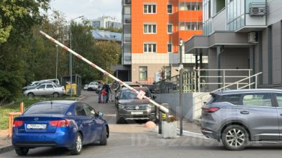 через шлагбаум. Парковать машину можно свободно во дворе или ставить машину на многоуровневый паркинг который расположен в 3 шагах от дома.