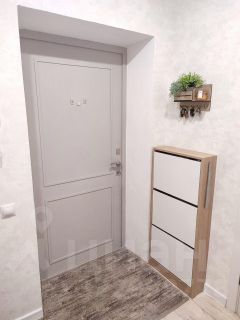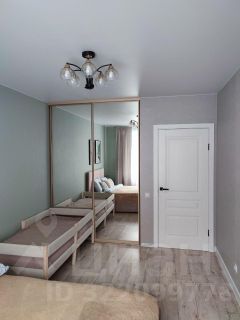 Квартира 34 кв.м. Спальня с вместительной гардеробной и зеркалом в пол.