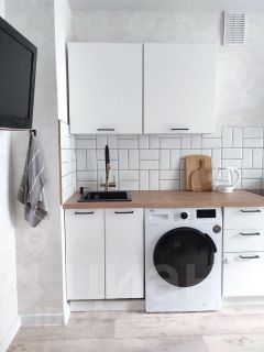 Просторная кухня со встроенной индукционной панелью и духовым шкафом (остальную технику можем тоже оставить по договорённости).