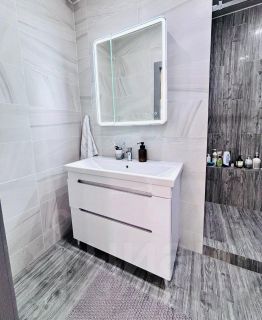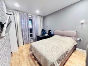 На первом уровне: просторная гостиная-столовая , совмещенная с кухней, выход на огромную застекленную лоджию. две изолированные спальни, большая функциональная гардеробная ( решение для идеального порядка), и просторная ванная комната с качественной отделкой.