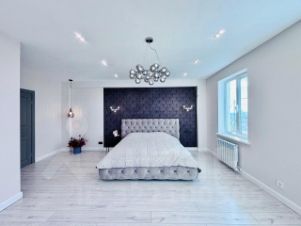 На втором уровне: светлая красивая спальня с отдельной ванная комнатой .