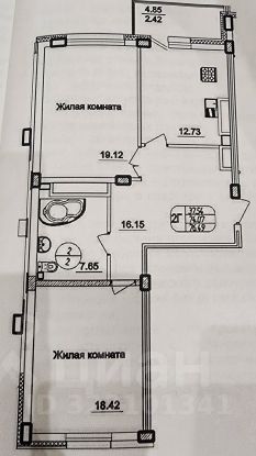 Площадь квартиры 77 кв.м. Просторные комнаты: 18 кв.м. и 19 кв.м. Кухня 14 кв.м.