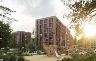 Экстерьер выполнен в английском промышленном стиле: фасады из керамического кирпича подчёркивают строгость и историю. Обилие стекла, вертикальные балки и арочные конструкции создают гармоничный современный облик.
