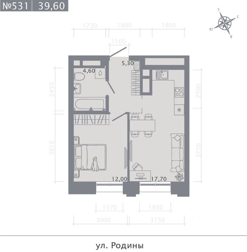 Продаётся 1-комнатная квартира в строящемся доме (Корпус 2), срок сдачи: I-кв. 2029, общей площадью 39.6 кв.м., на 13 этаже.
