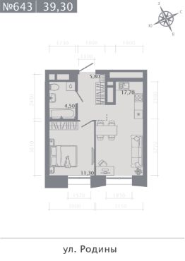 Продаётся 1-комнатная квартира в строящемся доме (Корпус 2), срок сдачи: I-кв. 2029, общей площадью 39.3 кв.м., на 13 этаже.