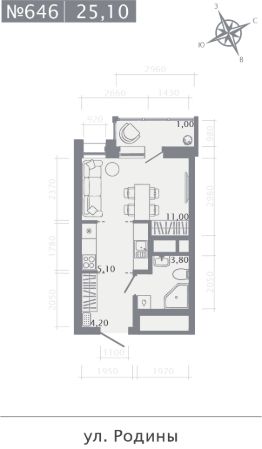 Продаётся студия в строящемся доме (Корпус 2), срок сдачи: I-кв. 2029, общей площадью 25.1 кв.м., на 13 этаже.