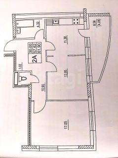 КУХНЯ 11,38 кв.м., 2 комнаты 12,95 кв.м. и 17,05 кв.м, санузел совмещенный широкий 4,32 кв.м., холл 10,90 кв.м., прачечная с системой хранения 1,02 кв.м., витражный балкон 8,56 кв.м.
