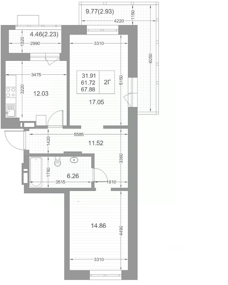 Продается 2-комнатная квартира 77 площадью 66,88 кв.м на 6 этаже проекта "Мой ритм" от "Ак Барс Дом". Купить квартиру можно в ипотеку со ставкой от 3,2% или воспользоваться услугой trade-in.