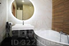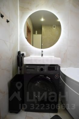 Сан.узел выполнен в керамограните, так же в квартире остается стиральная машина. Установлено зеркало с подсветкой.