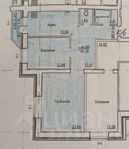 Общая площадь составляет 68 кв. м: