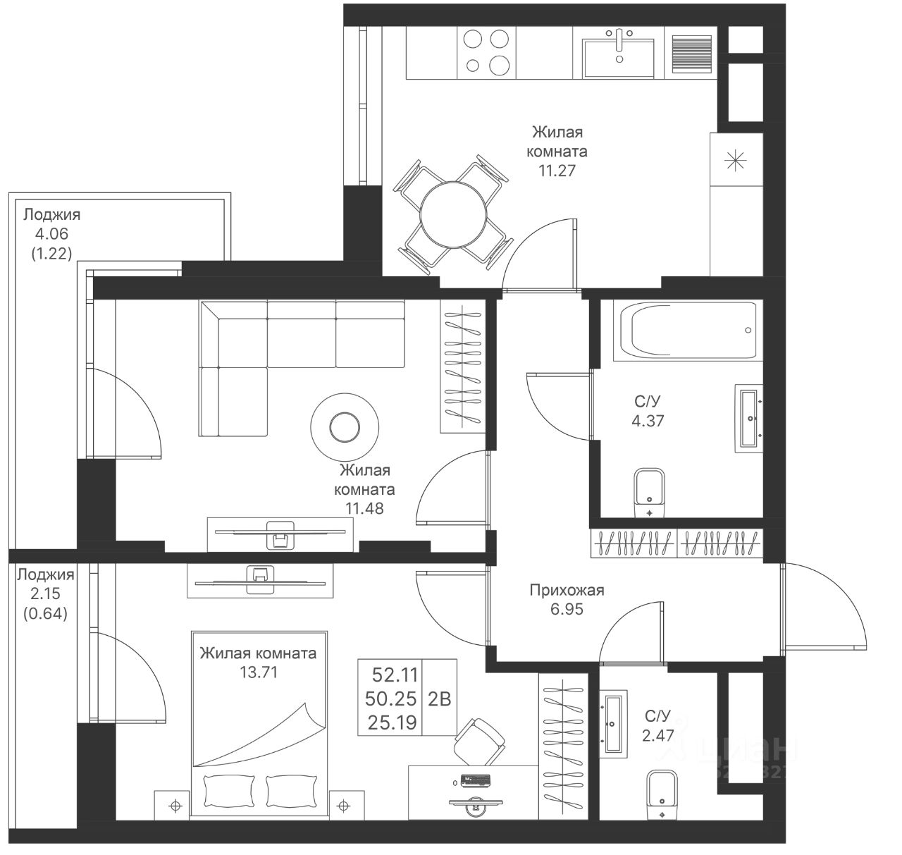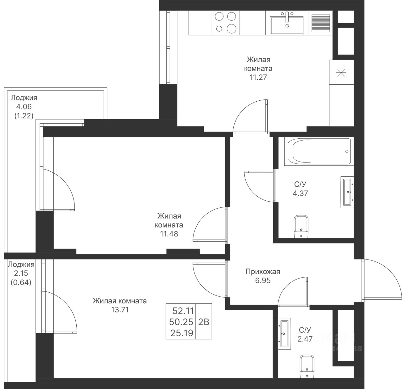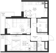 Продается 2-комнатная квартира 572 площадью 52,11 кв.м на 11 этаже в строящемся доме проекта "Мой Ритм" компании "Ак Барс Дом".