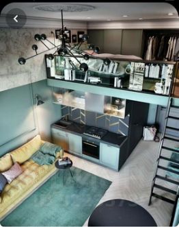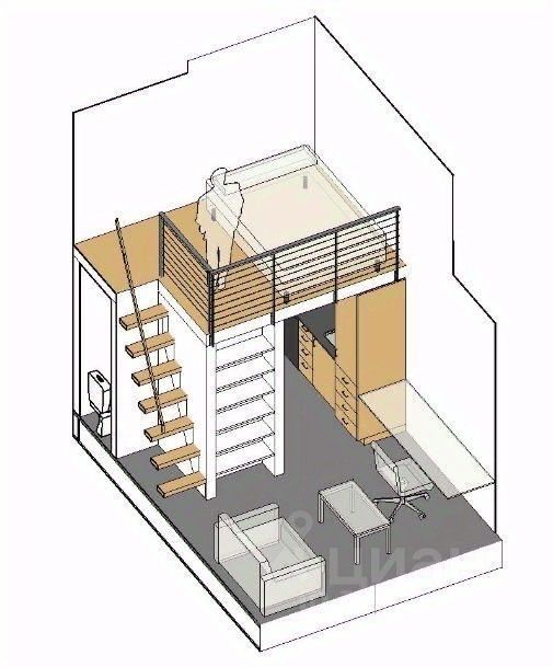 Особенности: Частично зонирована, что позволяет удобно разместить и спальную, и рабочую зону или кухню.
