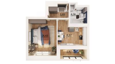 Продается 1-комнатная квартира 31 площадью 32,97 кв.м на 9 этаже. проекта "Мой ритм" от "Ак Барс Дом". Купить квартиру можно в ипотеку со ставкой от 3,2%.